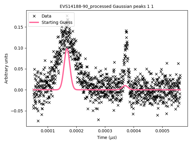The black crosses on the plot below are data obtained from an experiment at the VESUVIO beamline at ISIS Neutron and Muon source: